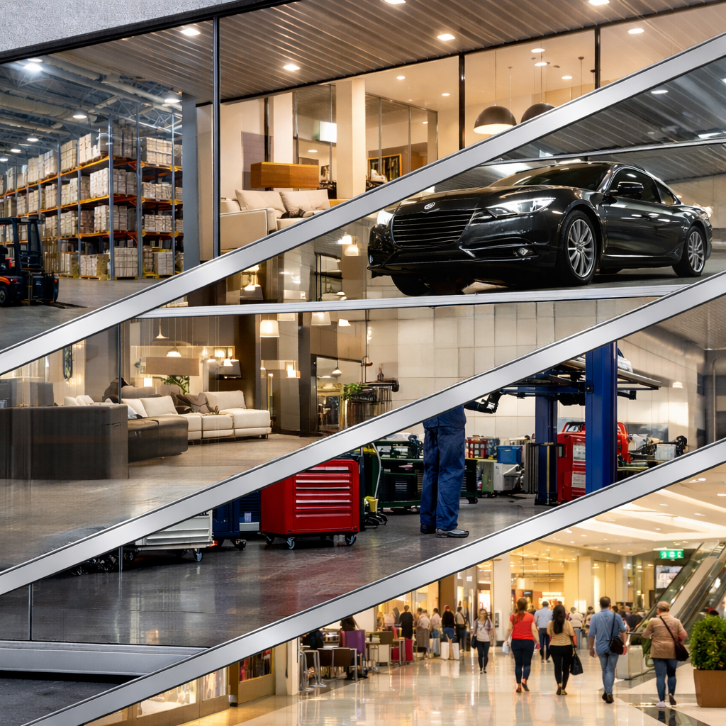 • Showroom e negozi – per valorizzare i prodotti e creare un ambiente luminoso e accogliente.
